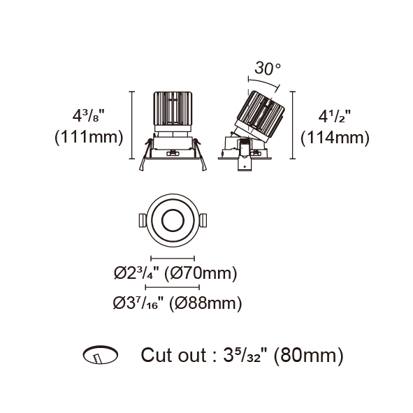 BRANKO-85 型號 2418.111-LEA-14 瓦數15W 電流/電壓350mA 光源流明948lm 角度 25°/32°/45°/54° 色溫3000K *另也有其他色溫的選擇 演色性90+ UGR IP44 顏色
