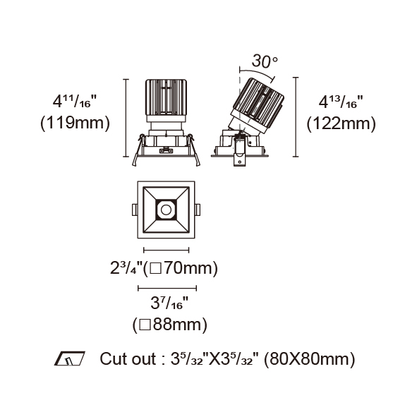 BRANKO-85 型號 2418.109-LEA-14 瓦數15W 電流/電壓350mA 光源流明950lm 角度 25°/32°/45°/53° 色溫3000K *另也有其他色溫的選擇 演色性90+ UGR IP44 顏色