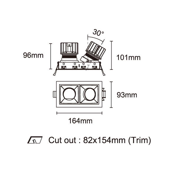 AMAFI-85V 型號 2114.436-2-LEE-21-DW 瓦數12Wx2 電流/電壓350 mA 光源流明36-1265 lm x2 角度 13°/31° 色溫1800-3000K *另也有其他色溫的選擇 演色性90+ UGR IP44 顏色