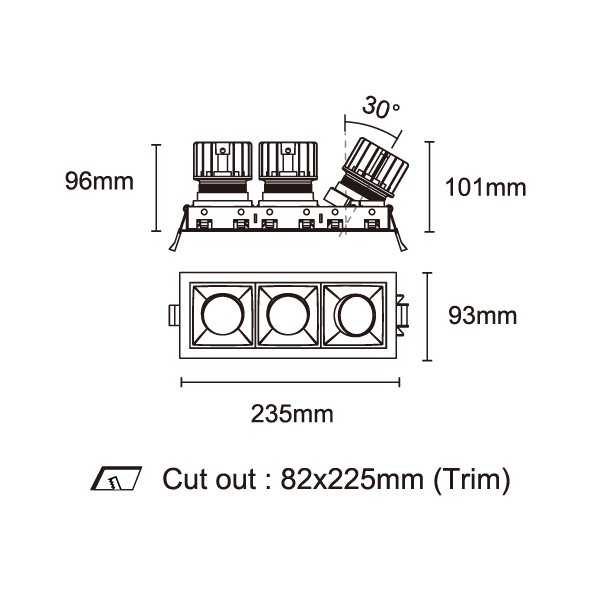 AMAFI-85V 型號 2114.437-3-ACOT-35 瓦數10W x3 電流/電壓800mA 光源流明774lm x3 角度 6° 色溫3000K *另也有其他色溫的選擇 演色性90+ UGR IP44 顏色