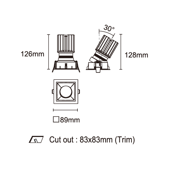 AMAFI-85V 型號 2114.436-3-LEE-21-DW 瓦數12Wx3 電流/電壓350 mA 光源流明36-1265 lm x3 角度 13°/31° 色溫1800-3000K *另也有其他色溫的選擇 演色性90+ UGR IP44 顏色