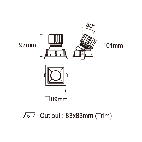 AMAFI-85V 型號 2114.437-3-LEE-21-DW 瓦數12Wx3 電流/電壓350 mA 光源流明36-1265 lm x3 角度 13°/31° 色溫1800-3000K *另也有其他色溫的選擇 演色性90+ UGR IP44 顏色