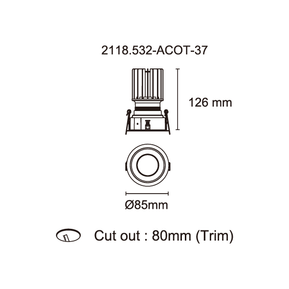 AMAFI-85V 型號 2118.532-ACOT-35 瓦數10W 電流/電壓800mA 光源流明535lm 角度 6° 色溫3000K *另也有其他色溫的選擇 演色性90+ UGR IP44 顏色