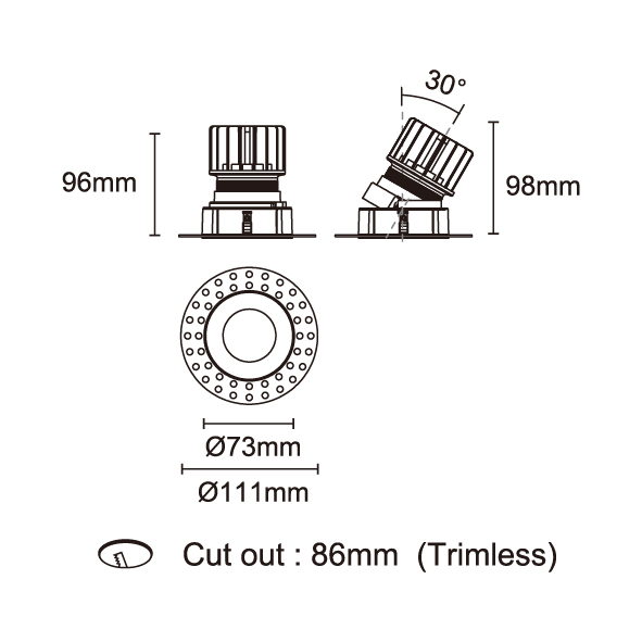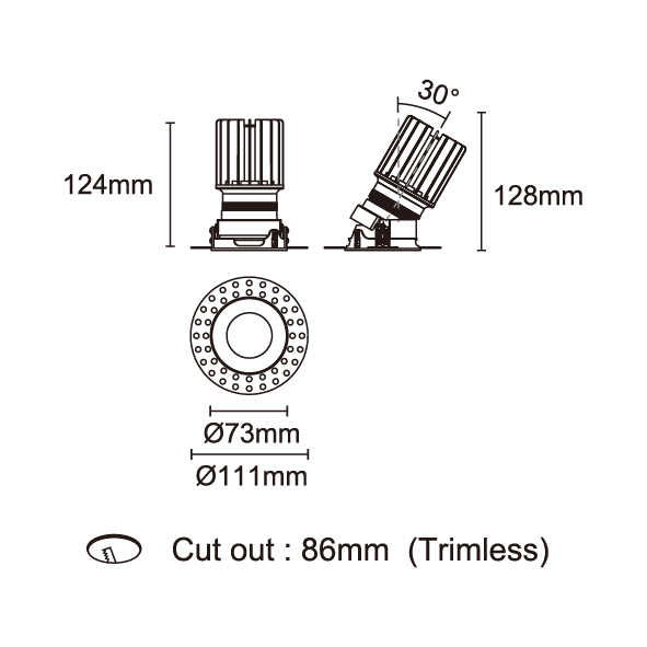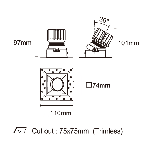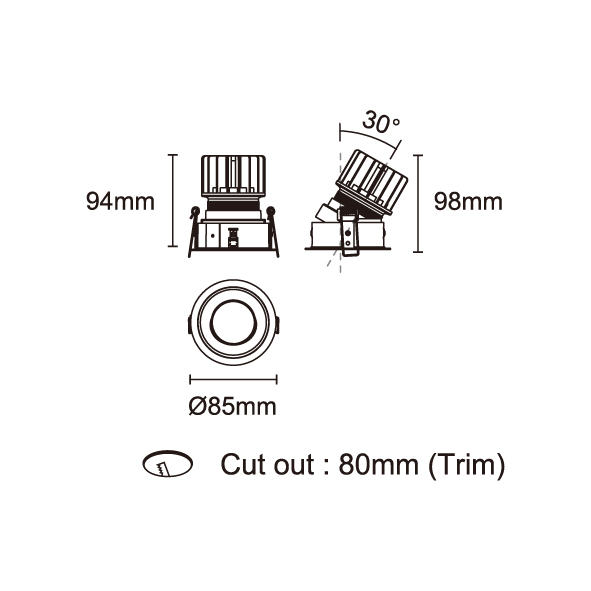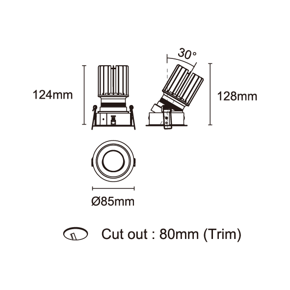 AMAFI-85V 型號 2118.533-ACOT-35 瓦數10W 電流/電壓800mA 光源流明535lm 角度 6° 色溫3000K *另也有其他色溫的選擇 演色性90+ UGR IP44 顏色