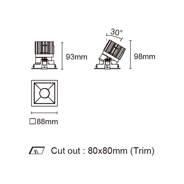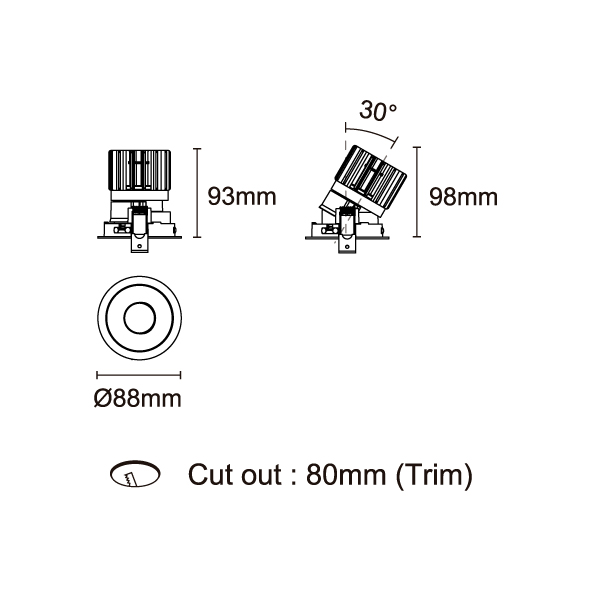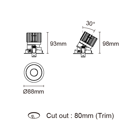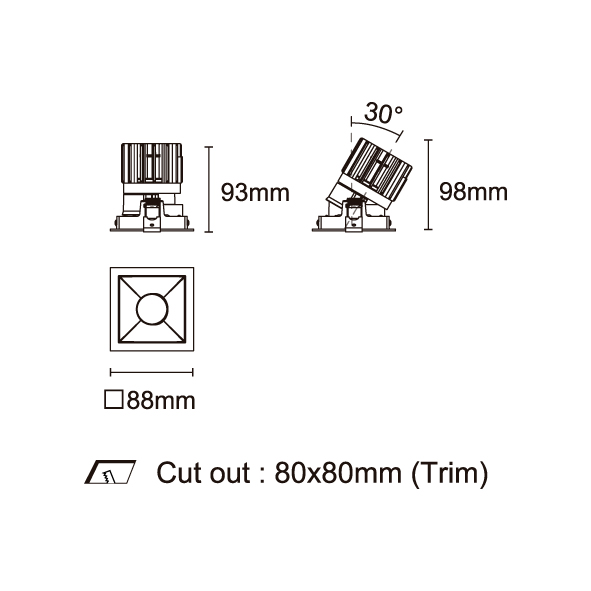 EPIC-85 型號 2118.207F-ACOT-70 瓦數12W 電流/電壓350mA 光源流明1124 lm 角度 30°/50°/60° 色溫3000K *另也有其他色溫的選擇 演色性90+ UGR- IP44 顏色