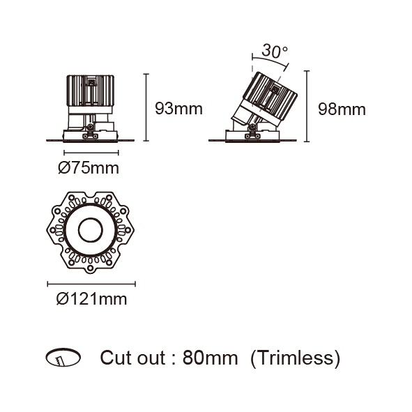EPIC-85 型號 2118.209A-ACOT-70 瓦數12W 電流/電壓350mA 光源流明1172 lm 角度 30°/50°/60° 色溫3000K *另也有其他色溫的選擇 演色性90+ UGR<19 IP44 顏色