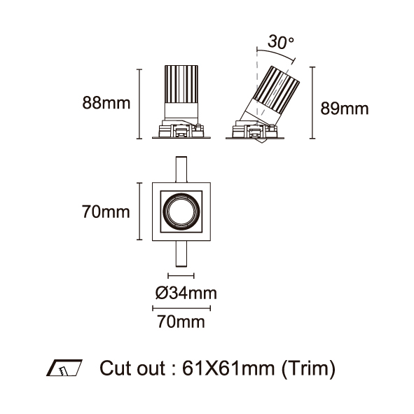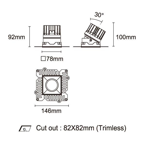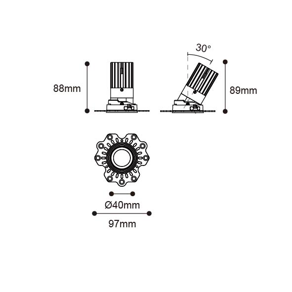 STARLUX-88 型號 2218.162-LEE-19-HE 瓦數18W 電流/電壓500mA 光源流明2504lm 角度 10°/15°/24°/36°/50° 色溫3000K *另也有其他色溫的選擇 演色性90+ UGR IP44 顏色