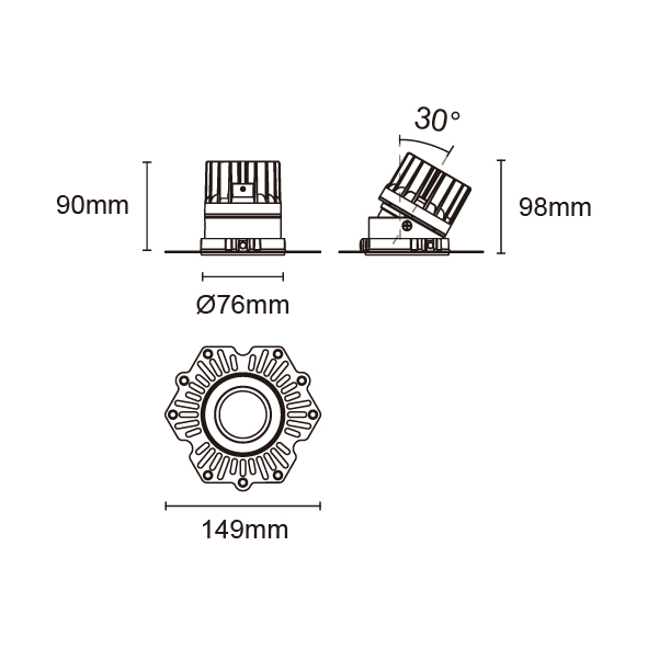STARLUX-50 型號 2214.412-1-LEE-18 瓦數10Wx1 電流/電壓800mA 光源流明774lm 角度 15° 色溫3000K *另也有其他色溫的選擇 演色性90+ UGR IP44 顏色