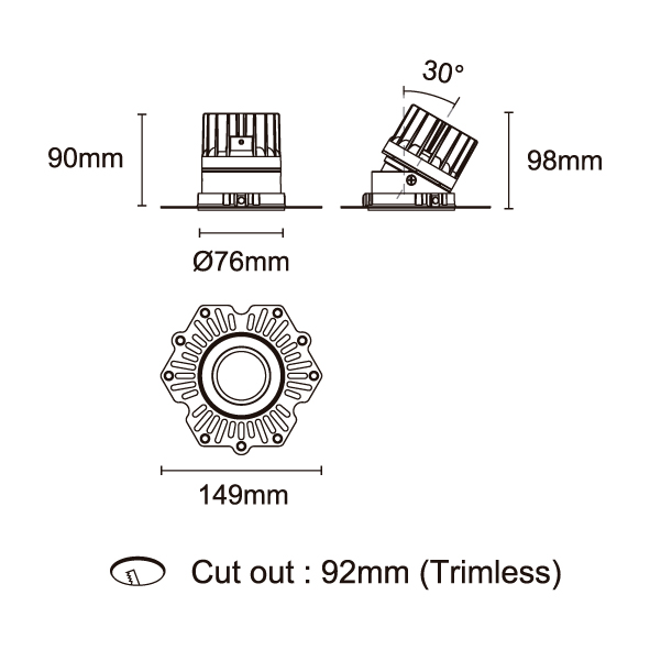 STARLUX-50 型號 2218.240F-LEE-18 瓦數10W 電流/電壓800mA 光源流明774lm 角度 15° 色溫3000K *另也有其他色溫的選擇 演色性90+ UGR IP44 顏色