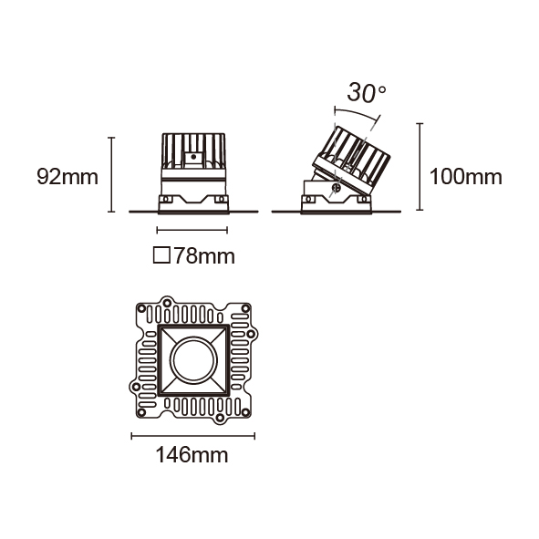 STARLUX-88 型號 2218.164-LEE-20 瓦數10W 電流/電壓800mA 光源流明774lm 角度 8° 色溫3000K *另也有其他色溫的選擇 演色性90+ UGR IP44 顏色
