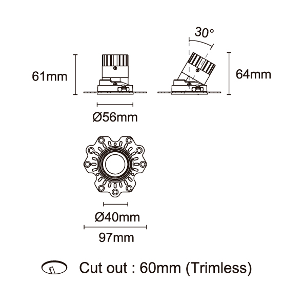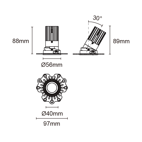 STARLUX-50 型號 2218.240F-ACOT-96 瓦數7W 電流/電壓350mA 光源流明656lm 角度 18°/25°/40°/55° 色溫3000K *另也有其他色溫的選擇 演色性90+ UGR IPIP44 顏色