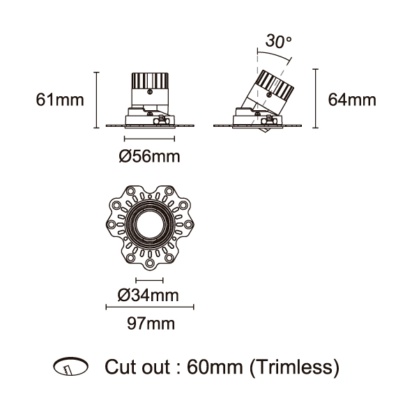 STARLUX-50 型號 2218.510-ACOT-96 瓦數7W 電流/電壓350mA 光源流明656lm 角度 18°/25°/40°/55° 色溫3000K *另也有其他色溫的選擇 演色性90+ UGR IPIP44 顏色