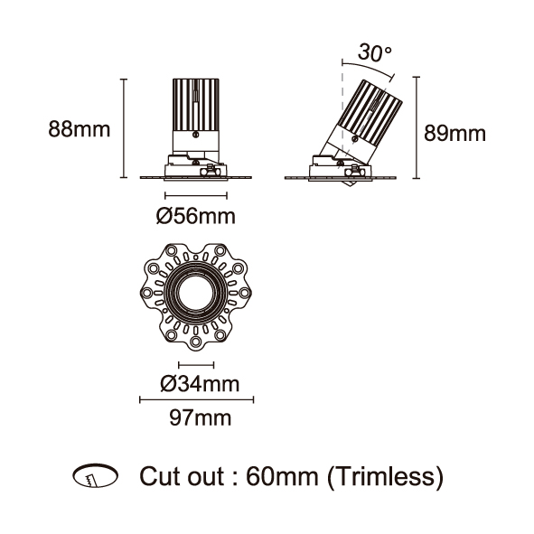 STARLUX-88 型號 2218.164-LEE-19-HE 瓦數18W 電流/電壓500mA 光源流明2504lm 角度 10°/15°/24°/36°/50° 色溫3000K *另也有其他色溫的選擇 演色性90+ UGR IP44 顏色