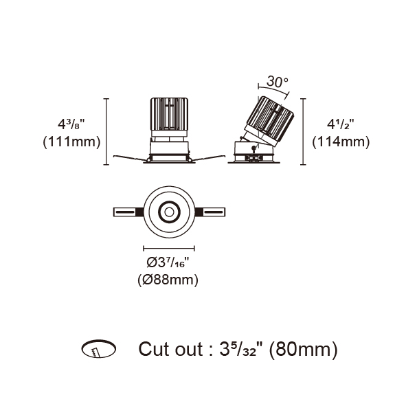 BRANKO-85 型號 2418.111-LEA-14 瓦數15W 電流/電壓350mA 光源流明948lm 角度 25°/32°/45°/54° 色溫3000K *另也有其他色溫的選擇 演色性90+ UGR IP44 顏色