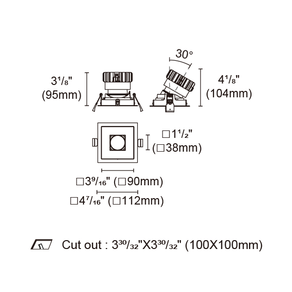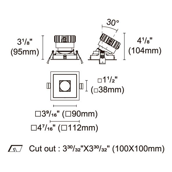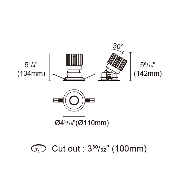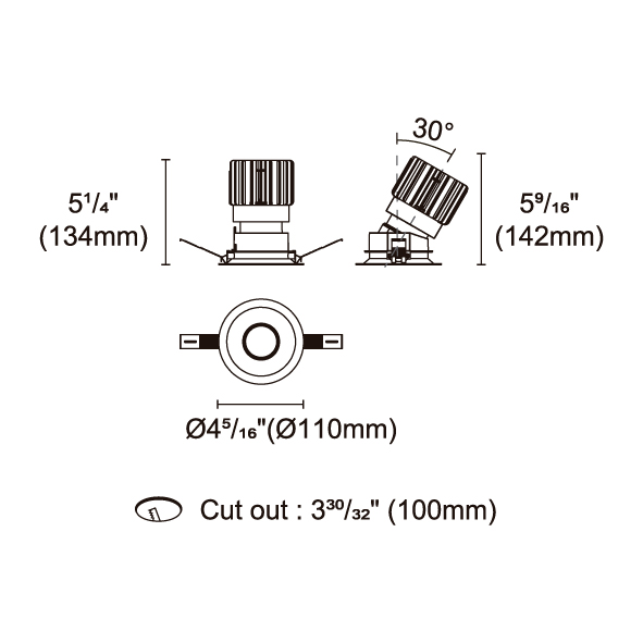 BRANKO-110 型號 2418.204A-ACOT-84-AM 瓦數25W 電流/電壓600mA 光源流明1623lm 角度 27°/37°/46°/54° 色溫3000K *另也有其他色溫的選擇 演色性90+ UGR IP44 顏色