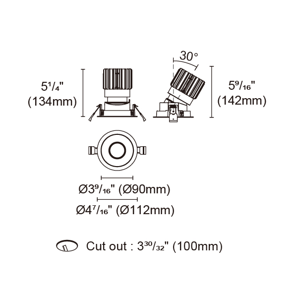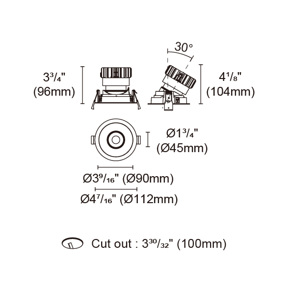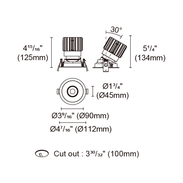 BRANKO-110 型號 2318.135-LEA-15-DW 瓦數18W 電流/電壓450mA 光源流明34-977lm 角度 20°/25°/40°/46° 色溫1800-3000K *另也有其他色溫的選擇 演色性90+ UGR IP44 顏色