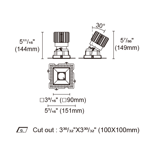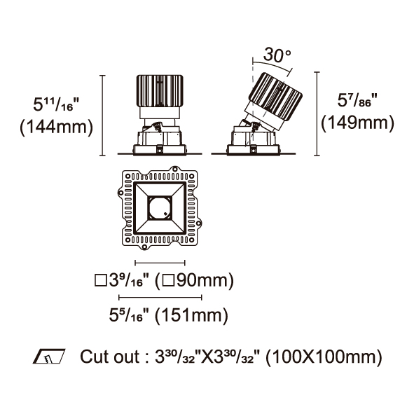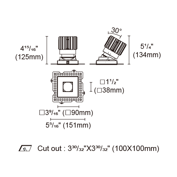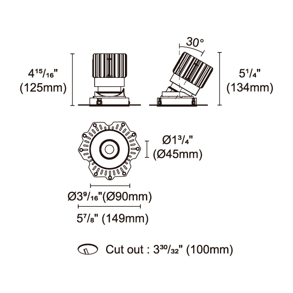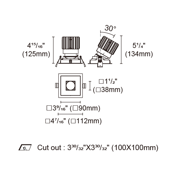BRANKO-110 型號 2418.120-ACOT-84-AM 瓦數25W 電流/電壓600mA 光源流明1618lm 角度 26°/36°/45°/54° 色溫3000K *另也有其他色溫的選擇 演色性90+ UGR IP44 顏色