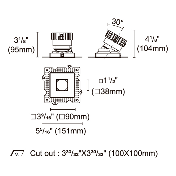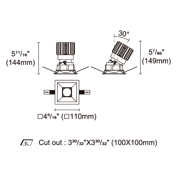 BRANKO-110 型號 2418.205A-ACOT-84-AM 瓦數25W 電流/電壓600mA 光源流明1618lm 角度 26°/36°/45°/54° 色溫3000K *另也有其他色溫的選擇 演色性90+ UGR IP44 顏色