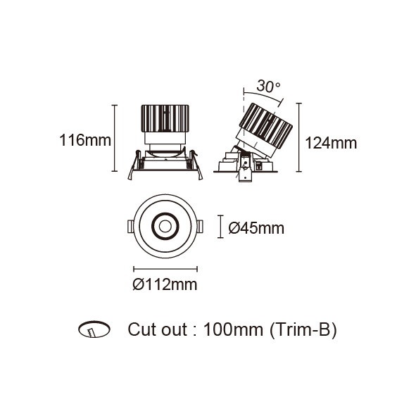 BRANKO-110 型號 2318.167-LEE-15-DW 瓦數16W 電流/電壓450 mA 光源流明34-1507 lm 角度 20°/25°/40°/45° 色溫1800-3000K *另也有其他色溫的選擇 演色性90+ UGR IP44 顏色