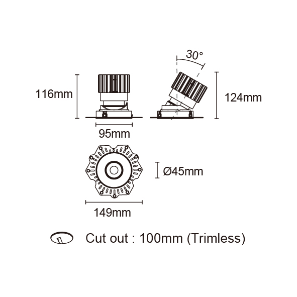 BRANKO-110 型號 2418.118-LEE-15 瓦數17W 電流/電壓500 mA 光源流明2004 lm 角度 15°/24°/36°/50° 色溫3000K *另也有其他色溫的選擇 演色性90+ UGR IP44 顏色