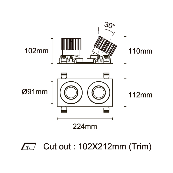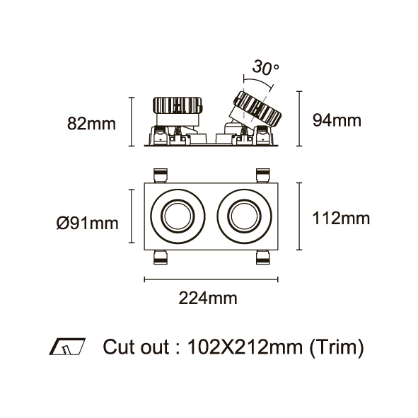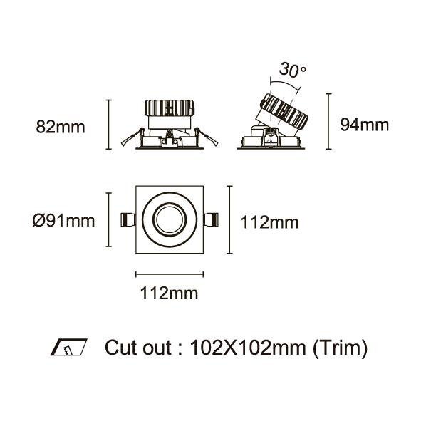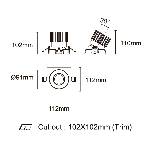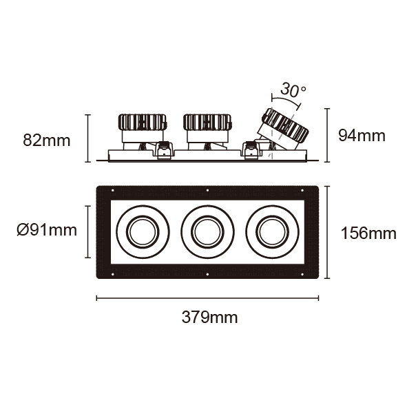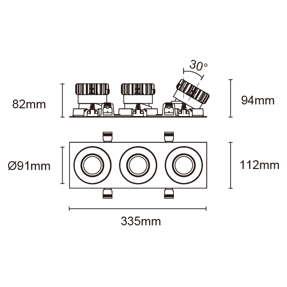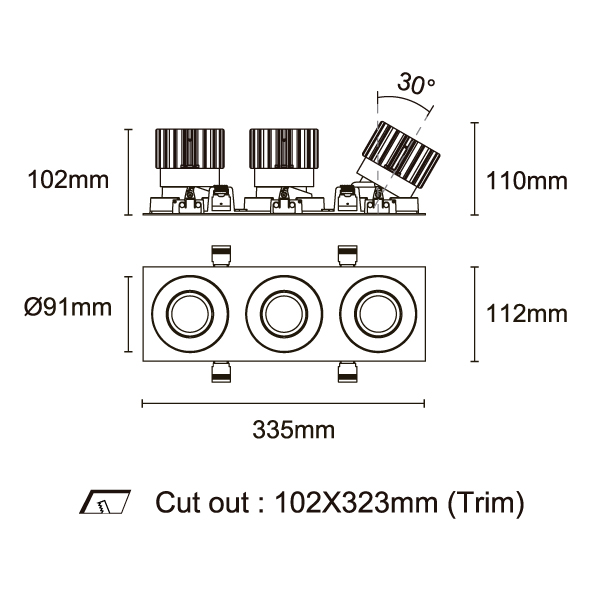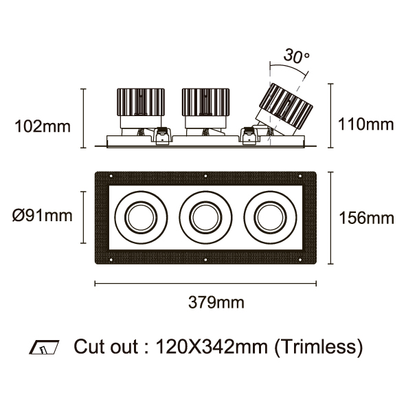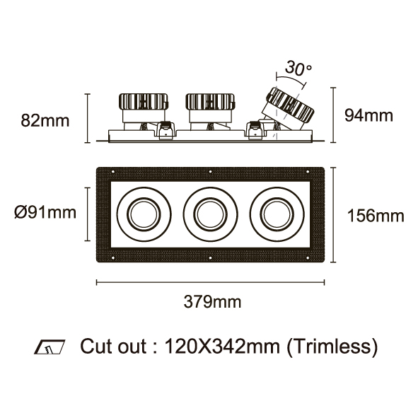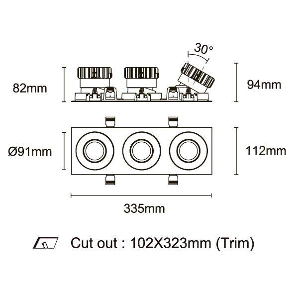 ESB 型號 ESB35-TF3-WH-RGAGAGA-WH-ACOT72 瓦數30Wx3 電流/電壓700mA 光源流明2873lmx3 角度 30°/40°/50°/55° 色溫3000K *另也有其他色溫的選擇 演色性90+ UGR IP44 顏色