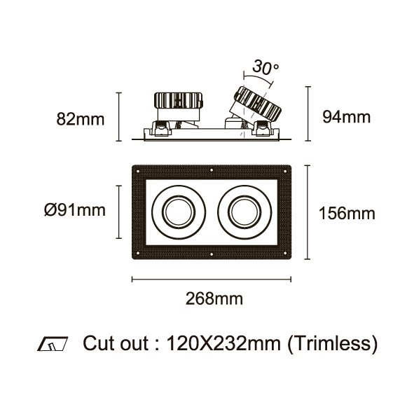 ESB 型號 ESB35-TL2-WH-RGAGA00-WH-ACOT72 瓦數30Wx2 電流/電壓700mA 光源流明2873lmx2 角度 30°/40°/50°/55° 色溫3000K *另也有其他色溫的選擇 演色性90+ UGR IP44 顏色