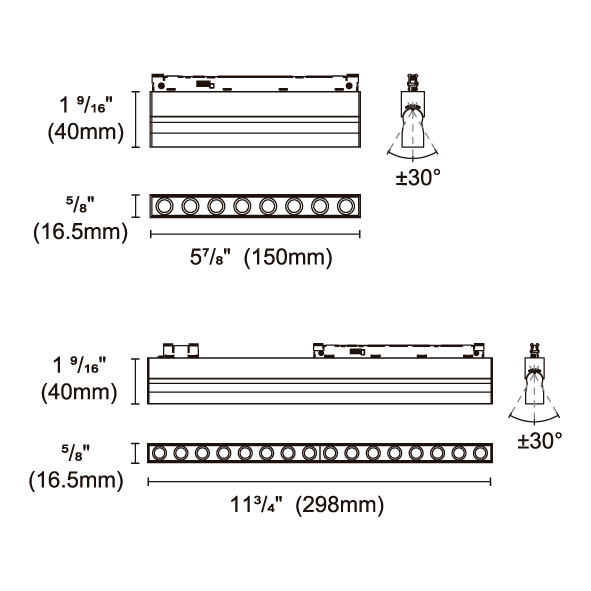 OZMMAS-48V 型號 OZ48-SBZ-40 瓦數7.4W 電流/電壓48 VDC 光源流明644 lm 角度 15°~40° 色溫3000K *另也有其他色溫的選擇 演色性95+ UGR IP20 顏色