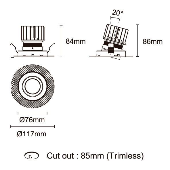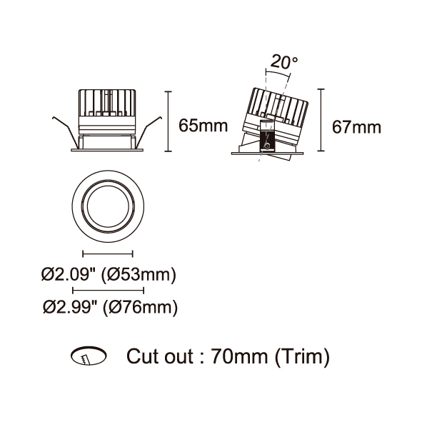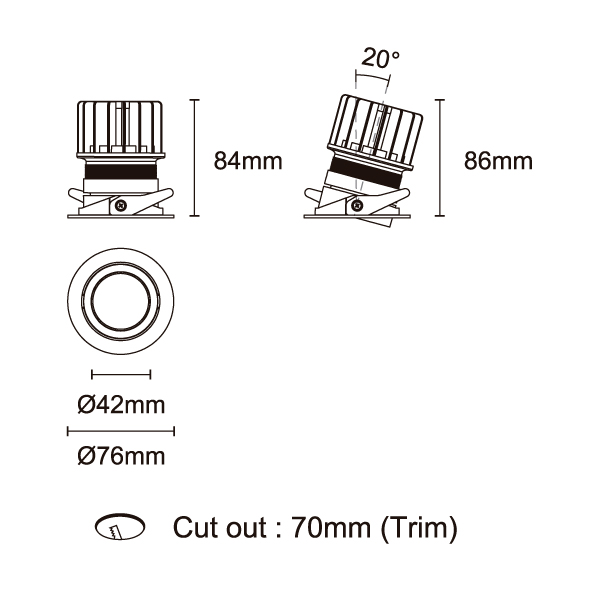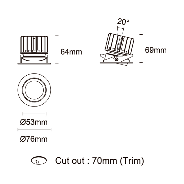 GAGA 型號 2118.661-ACOT-35 瓦數10W 電流/電壓800mA 光源流明453 lm 角度 6° 色溫3000K *另也有其他色溫的選擇 演色性90+ UGR<19 IPIP44 顏色