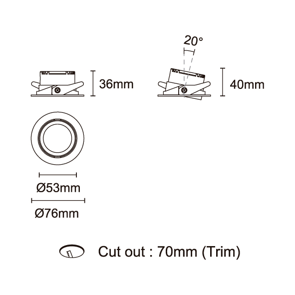 GAGA 型號 2118.662-ACOT-36 瓦數14W 電流/電壓350mA 光源流明946 lm 角度 15°/24°/36°/50° 色溫3000K *另也有其他色溫的選擇 演色性90+ UGR<19 IPIP20 顏色